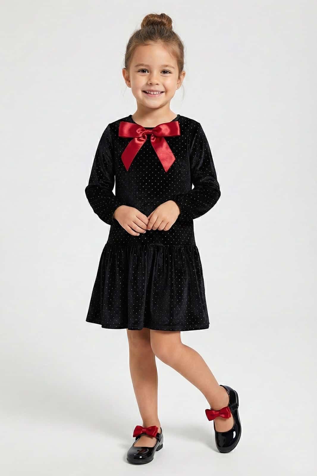 DMB FİYONKLU KADİFE ELBİSE